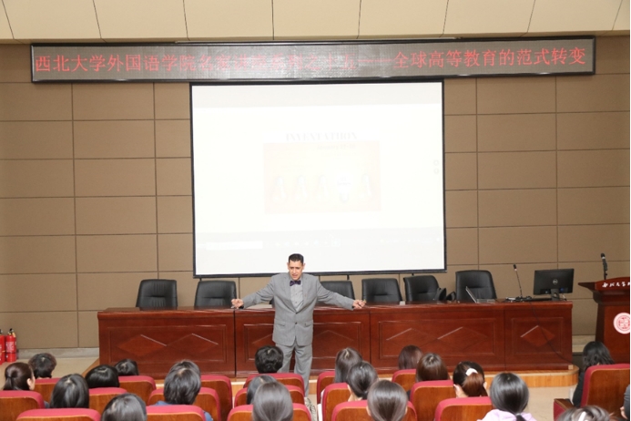 At 4:30 PM,April 26, 2023, Professor Ray Taheri from the University of British Columbia in Canada was invited to give the 15th lecture in the “Distinguished Lecture Series” at the School of Foreign Languages, Northwest University. The lecture, titled “Global Paradigm Shift in Higher Education”, was held in the Lecture Hall of the Second Classroom of our school and was attended by around a hundred faculty and students.