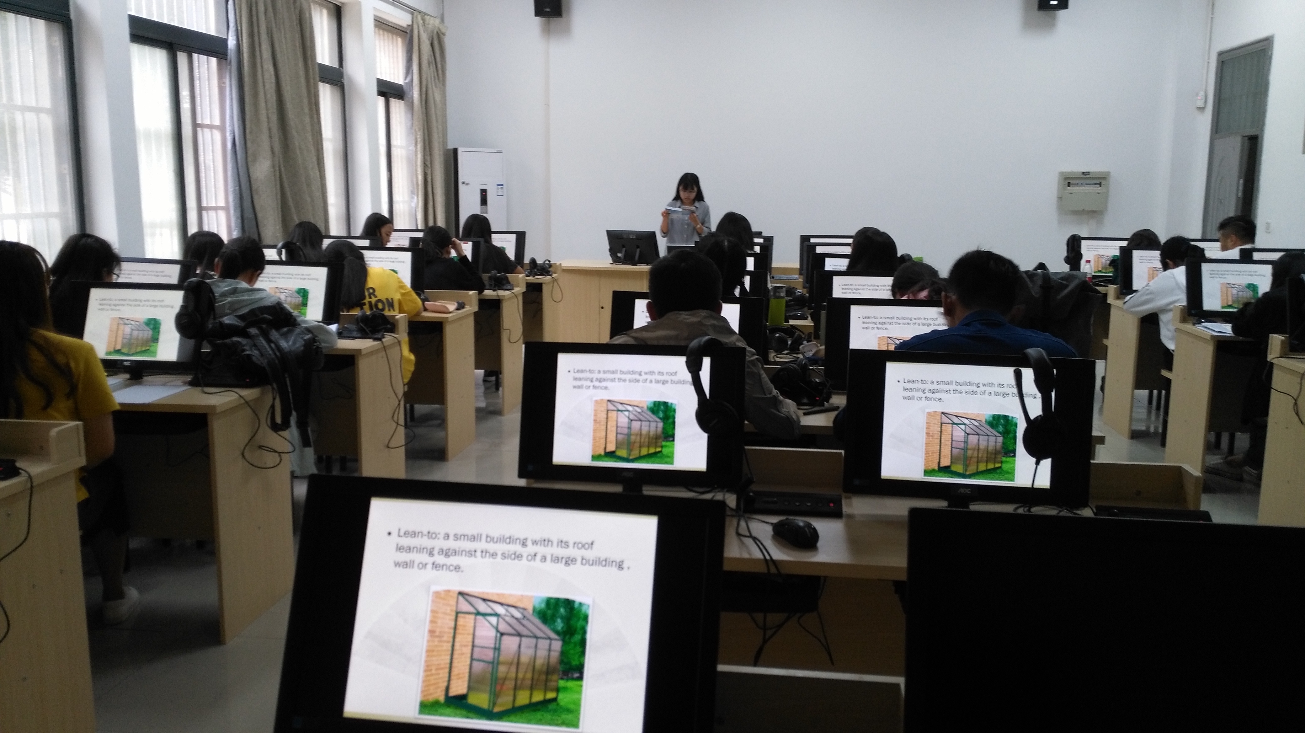 2017暑期,在学院积极努力和学校大力支持下,我院实验室建设经过充分的调研、论证,最终立项。暑假初期完成了4套语言实验室,1套带录播功能的可视化语言实验室招标工作。招标完成后,实验中心人员与乙方加班加点施工,确保了在开学前4套语言实验室建成。最终,新建的4套实验室如期在开学第一天投入使用,现运行良好。带录播功能的可视化实验室建设也接近尾声,随着这5套实验室的建成,极大的提升了我院实验教学中心的教学科研条件。