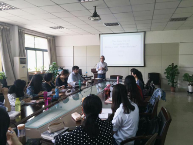 报告中Aled Jones教授从历史学的角度为学生们深入讲解了后现代主义文学理论的历史起源、理论发展的重要时期、后现代主义风潮对艺术人文等社会各方面的影响、以及其引起的文化转型。会后Aled Jones教授和全体学生进行了热烈的学术探讨与互动。