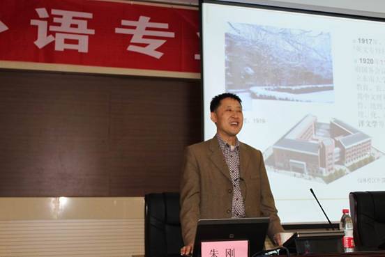 11月1日下午,南京大学外国语学院院长、博士生导师朱刚教授应邀在我院高级口译模拟实验室作了题为“外语专业的教学与研究”的学术报告。报告会由我院院长崔雅萍教授主持,160名师生参加了报告会。